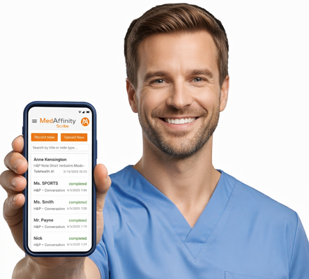Today's students will document in AI-assisted environments from day one of practice — and MedAffinity's AI Scribe for Education prepares them for that reality. Using the latest ambient AI technology, it listens and captures clinical encounters in real time, transcribing with the accuracy and nuance that modern medical documentation demands.